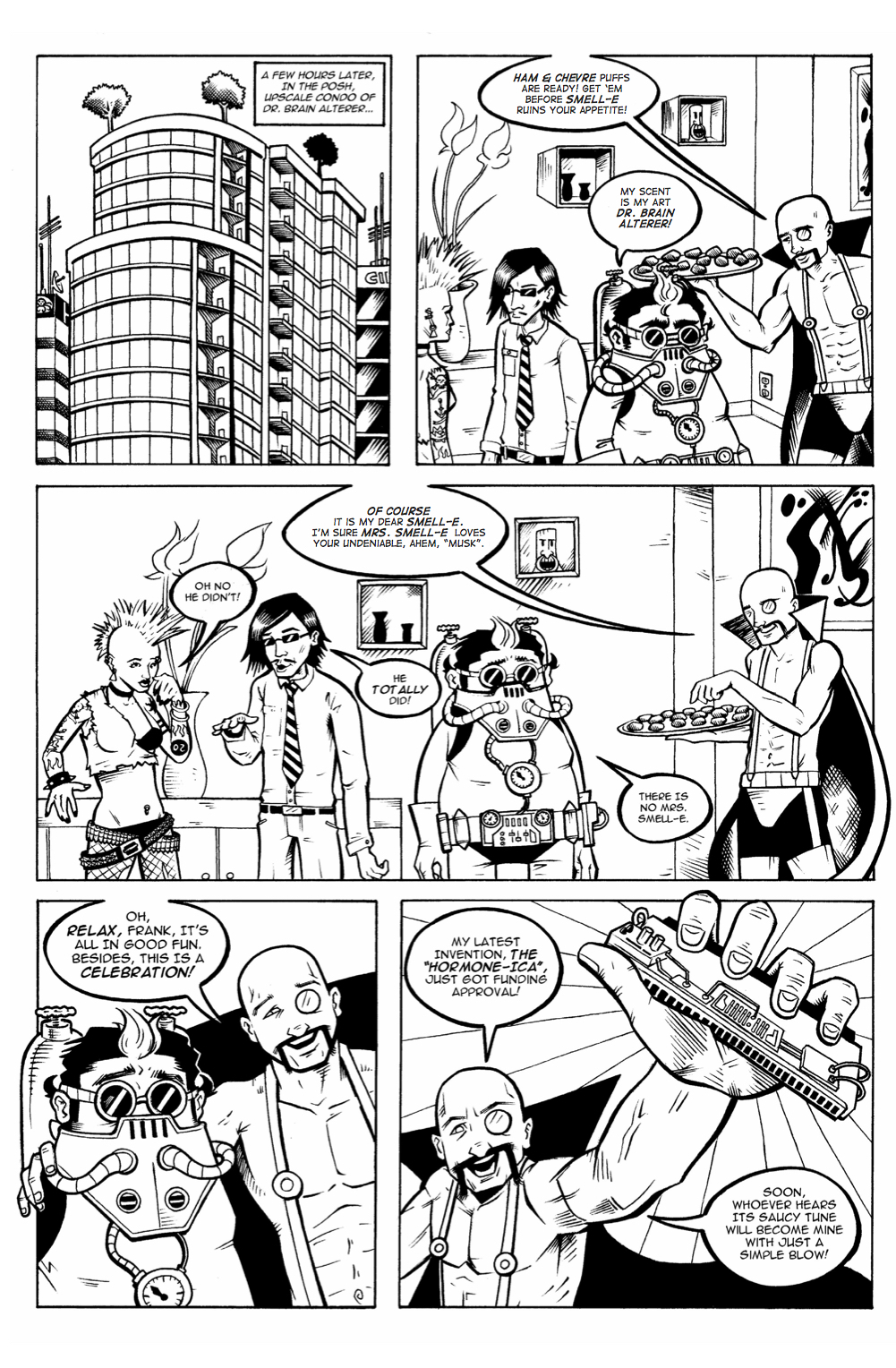 Still tempted by the occasional wacky scheme (unleashing a giant, flaming karate penguin to wreck mayhem in the downtown, creating neon-coloured robot dopplegangers of his enemies, baking mind-controlling panzarottis), for the most part, he's put his evil-ways behind him. Now he's just trying to get by in a world he never made (or took over!) by making pizza.